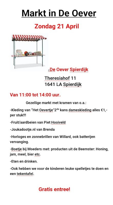 We houden daarom een kleine markt met een paar lokale ondernemers.. er is voor jong en oud iets te doen. Gezellig langs de kraampjes gaan. Kennis maken met streekproducten uit de Beemster. Koffie hoekje met wat lekkers. Poffertjes eten kinder hoekje.