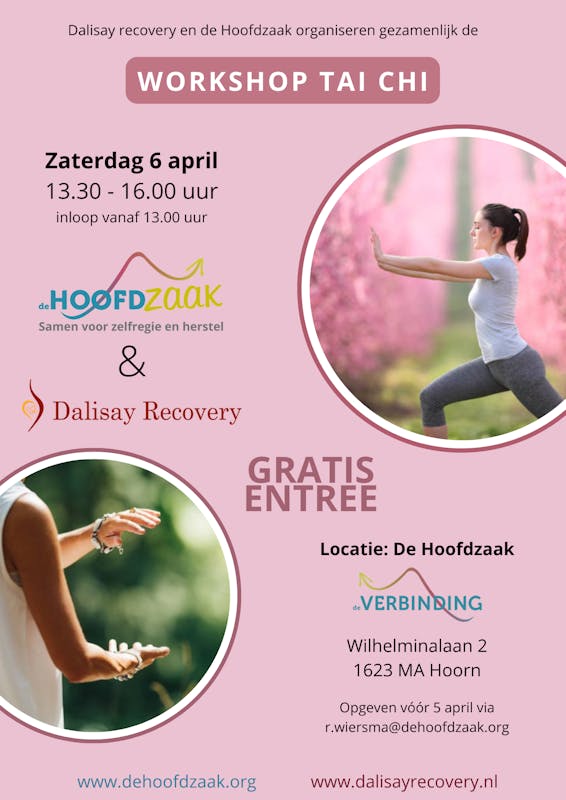 Er is nog plek in onze workshop Tai Chi komende zaterdag! Meedoen kost niets en het is een leuke manier om gelijkgestemden te ontmoeten.
