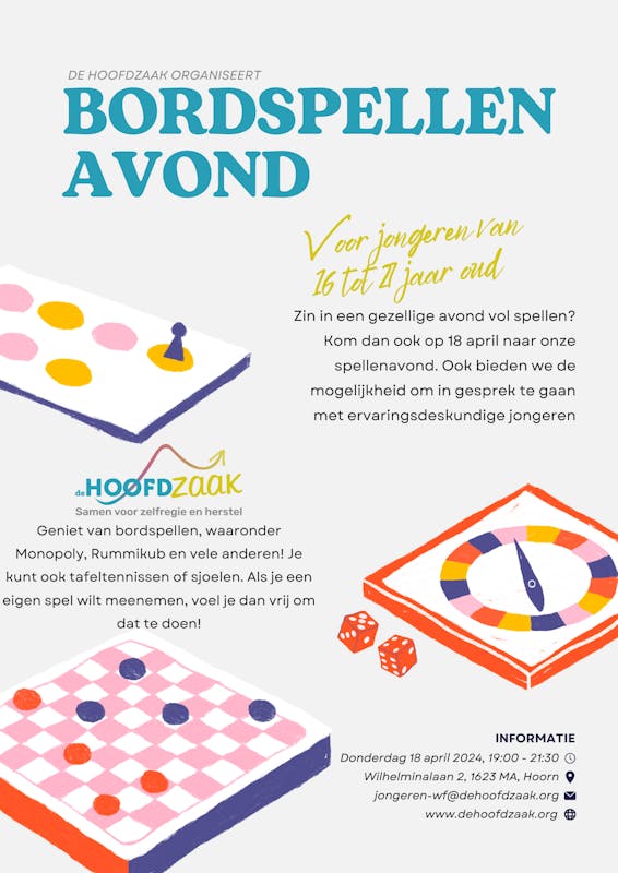 Ben je tussen de 16 en 27 jaar en heb je zin in een gezellige (Bord)spellenavond samen met (ervaringsdeskundige) jongeren die jou begrijpen?