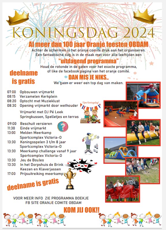 Kijk hier op de facebookpagina van het Oranje Comité Obdam. En hier voor een terugblik op Koningsdag 2023