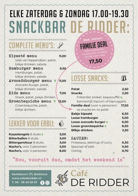 Kom eens een hapje eten in Eetcafé de Ridder.