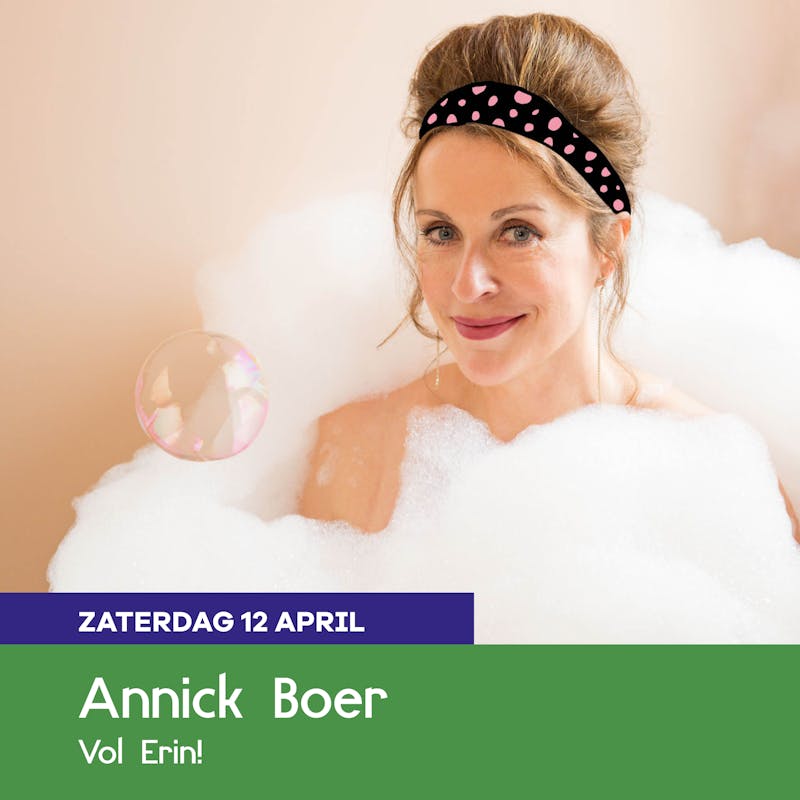 De nieuwe cabaretvoorstelling van actrice, zangeres en cabaretière Annick Boer. Naast haar kleurrijke theatercarrière kennen mensen Annick vooral van Kanniewaarzijn, de TV kantine, Wie is de Mol? en LOL. Maar sinds 7 jaar toert zij met haar zelfgeschreven cabaretvoorstellingen langs de theaters. En die blijken succesvol te zijn. Ze kreeg naast veel 4 sterren-recensies (de pers schreef onder andere: ´Bijzonder grappige anekdotes en prachtige liedjes!´), veel lof van het publiek. Met haar groeiende publiek, haar groeiende cabaret-ervaring en vooral ook omdat ze nog lang niet uitverteld is, was er reden genoeg om een derde voorstelling te maken. De voorstelling heet Vol Erin! en dat zal ze ook gaan met spitse komische conferences vol zelfspot en prachtige nieuwe liedjes met live muziek van Jean Louis van Dam.