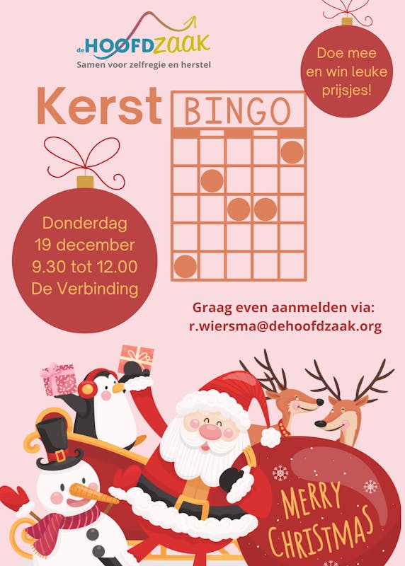 Kom je gezellig naar het ontmoetingscafé op 19 december? Dan kun je meedoen met onze kerstbingo. Meedoen kost niets!