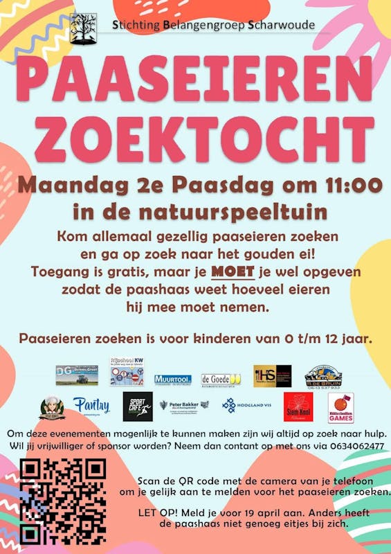 LET OP! Meld je voor 19 april aan. Anders heeft de paashaas niet genoeg eitjes bij zich.