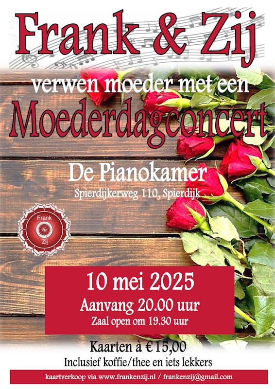 Een moederdagconcert van Frank & Zij op zaterdagavond 10 mei. Leuk om met je moeder, schoonmoeder, oma of kind naar toe te gaan. Maar natuurlijk is iedereen welkom!