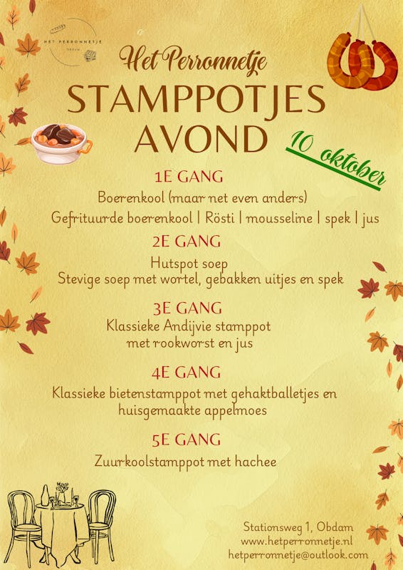 10 oktober - Stamppotjes avond bij restaurant Het Perronnetje!