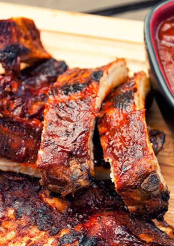 Kies uit een zoete of pittige finish en geniet van zoveel spareribs als je op kunt. Geserveerd met huisgemaakte frites, salade, sausjes en boter maiskolfjes.