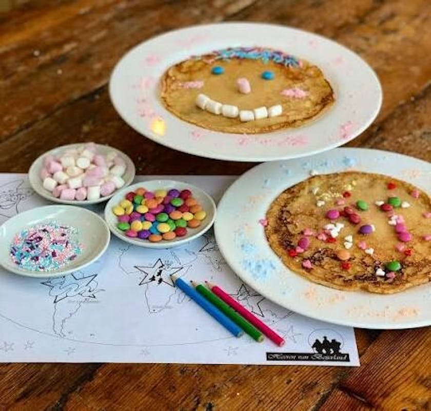 Versier je eigen pannenkoek met spikkels, poedersuiker of stroop. Met een lekker glaasje 100% natuurlijke limonade erbij. En daarna een verrassing om mee naar huis te nemen!