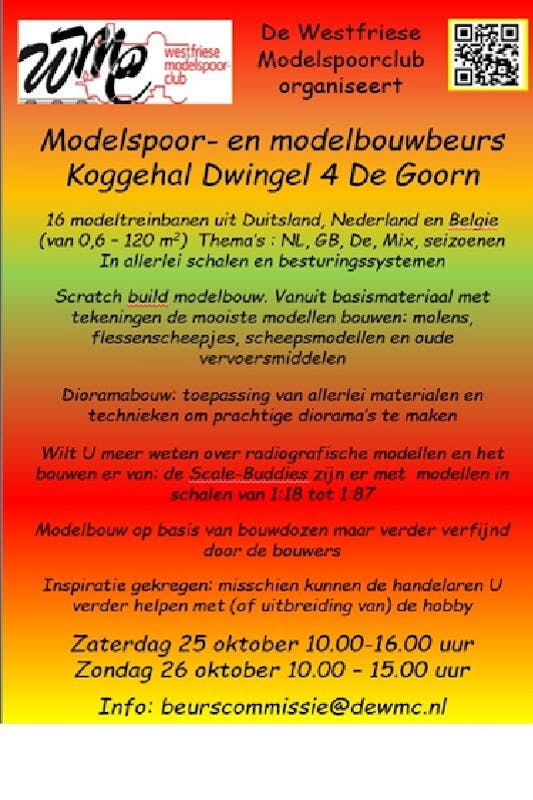 De Westfriese ModelspoorClub organiseert Modelspoor- en Modelbouwbeurs.