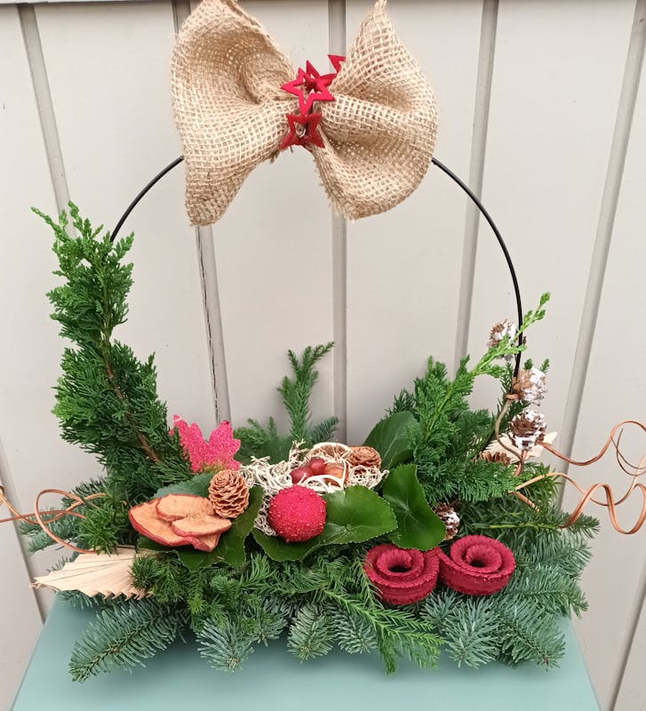 Tijdens de workshop maak je een hangend kerststuk voor aan de muur/deur of een liggend/staand kerststuk voor op tafel, allen mogelijk in verschillende uitvoering qua kleuren. Aan het eind van de workshop heb jij een prachtig kerststuk om mee te nemen naar huis.