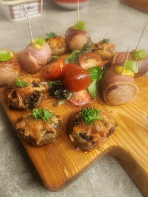 Denk bijvoorbeeld aan gevulde champignons, kleine pasteitjes met kippensoep ragout, steak met pepersaus of huisgemaakte paddenstoelen kroketjes.