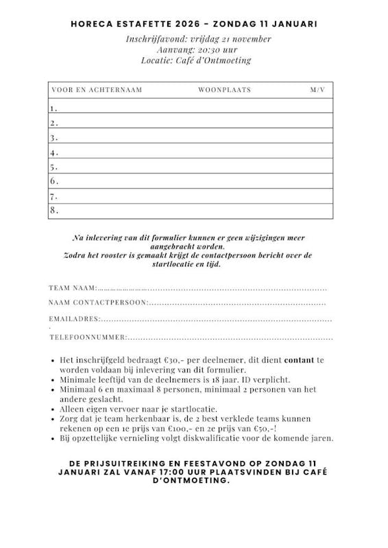 Horeca Estafette inschrijfavond - Vrijdag 21 november