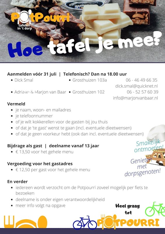 Potpourri je 2 september gezellig mee? Geef je dan op voor een 3-gangenmenu vol verrassingen.
