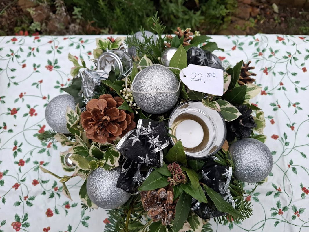 7 december ga ik weer van start met de verkoop van mijn zelfgemaakte klassieke biedemeyer stijl kerststukjes vanuit onze voortuin aan de Reigerlaan 20 in Ursem . Elke dag tot en met de kerstdagen is mijn stalletje geopend van 9 tot 5 uur. Ik maak kerststukjes in alle kleurtjes van de regenboog, maar natuurlijk ook traditionele rood/groen/goud/zilver. Ik kan ook op bestelling iets maken naar u speciale wensen of een eigen schaal opmaken. Prijzen vanaf 10 euro. Wil je er eentje die je hier ziet reserveren stuur mij dan gerust even een berichtje. Groetjes, Sandra 06-48484608 Tot dan!