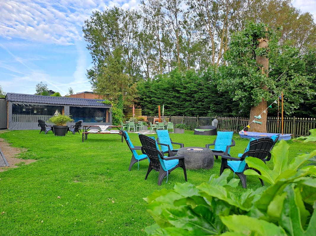 Kom heerlijk genieten in onze gezellige tuin en laat de kleintjes lekker taartjes bakken in de zandboot of springen op de trampoline. ⛵️🍀