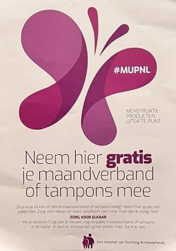 Ook worden we door het armoedefonds geholpen en zal er bij iedere kast een MUP punt komen waar meisjes/dames hun menstruatie producten kunnen pakken mochten ze daar zelf hun financiële middelen niet voor hebben.
