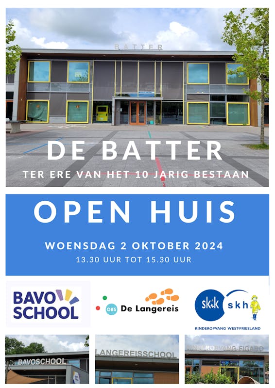 Op woensdag 2 oktober houden kinderopvang Figaro samen met de basisscholen en de medegebruikers van de Batter een open huis omdat wij ons 10-jarig bestaan mogen vieren.