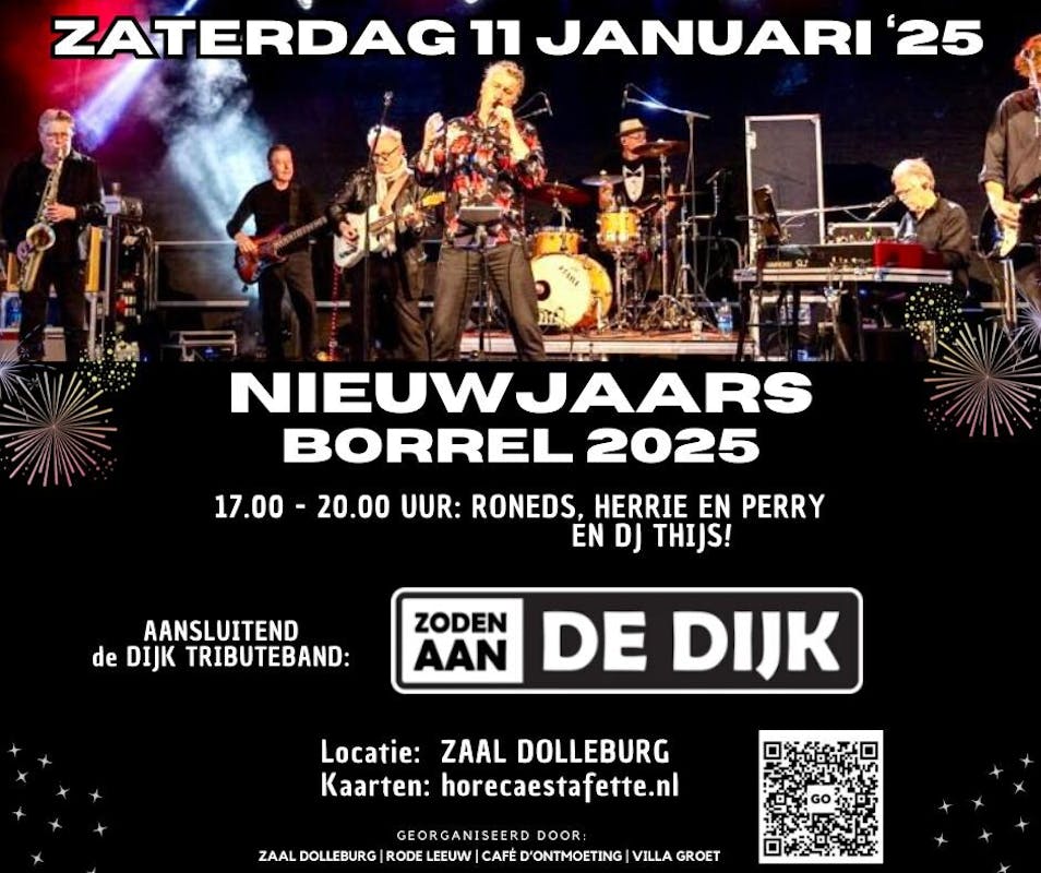 Ook dit jaar organiseert de horecaestafette groep DE NIEUWJAARSBORREL VAN KOGGENLAND in Zaal Dolleburg! Dit jaar met de enige echte DE DIJK tributeband, ZODEN AAN DE DIJK!