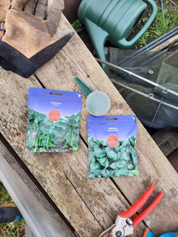 Dit jaar heb ik een zadenpakket besteld. Hier zitten ook zaden in die ik zelf niet zal kiezen. Gewoon omdat ik niet in mijn systeem heb dat je nu al iets kunt zaaien. Maar dit jaar heb ik tuinbonen en spinazie van scherp zaad. Beiden kunnen nu de grond in, het weer was goed en dus naar de tuin. Winterspinazie had mijn vader altijd, als je de spinazie dan wastte had je af en toe nog een zaad eraan zitten. Zaad met scherpe puntjes. En ja tuinbonen die noemde we paardenbonen en vonden we niet lekker. Ik heb gehoord dat je ze dubbel moet doppen en dat het dan een delicatesse is. Laten we eerst maar afwachten hoe het groeit. Een mede tuinder vertelde me net dat hij al 2 maal spinazie had gezaaid maar dat er niks was opgekomen.
