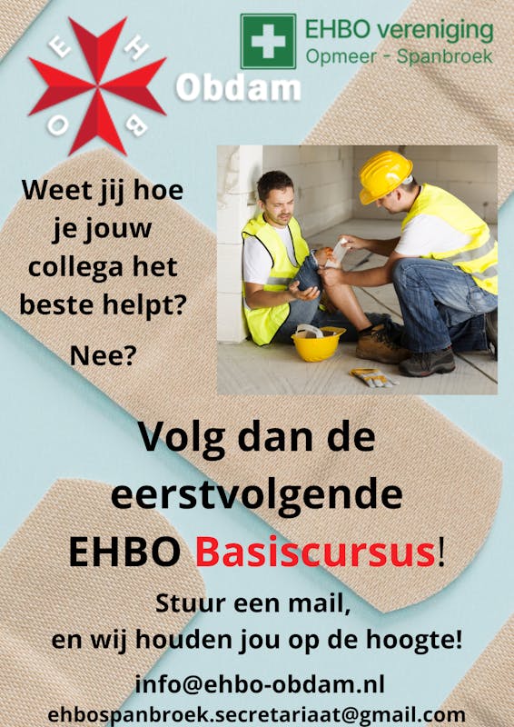 Binnenkort start de nieuwe cursus, schrijf je op tijd in vol = vol! Ongelukken kun je niet voorkomen, maar je kunt wel leren wat je kunt doen als het gebeurd. In de cursus lee...