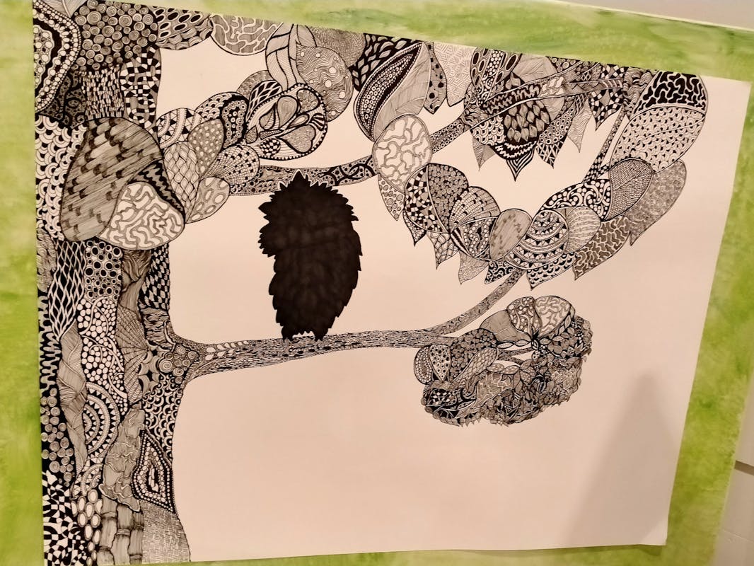 Ook wel eens zin om nieuwe inspiratie op te doen? Een paar jaar geleden heb ik om die reden een cursus meditatief tekenen gevolgd. Voor mij is he een heerlijke rustgevende manier van tekenen. Aanvankelijk maakte ik kleine tekeningetjes, nu maak ik tekeningen van 50 bij 60 centimeter - wat je noemt een volwassen formaat.