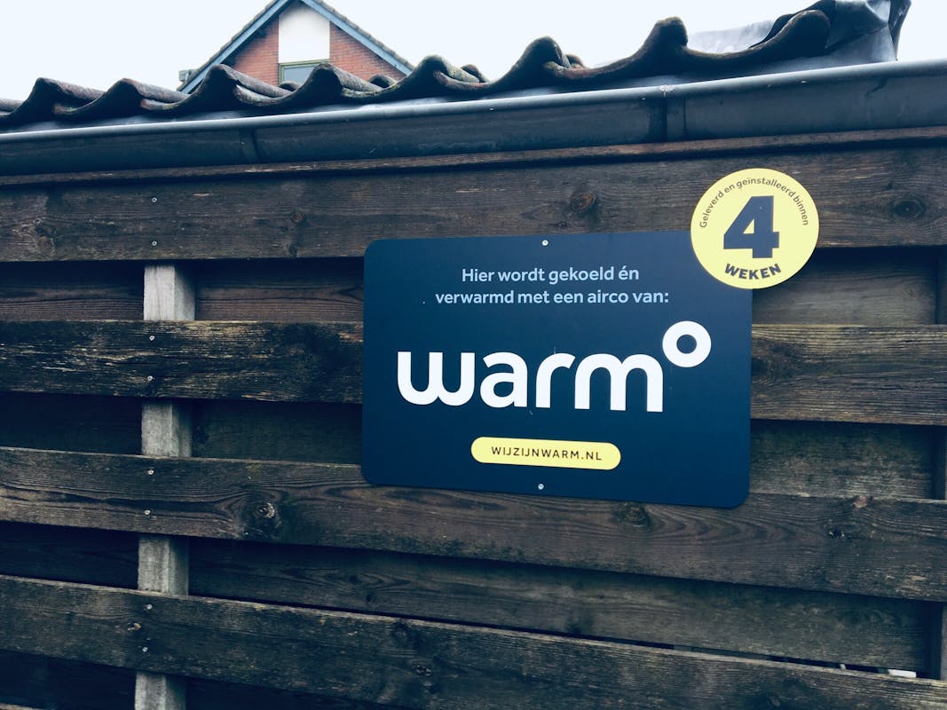 Het geheim van de bordjes: de 4 staat voor binnen vier weken aangelegd en WARM is de naam van dit interessante, jonge bedrijf, gekozen om het vooroordeel dat Airco’s alleen koelen direct te ontkrachten.