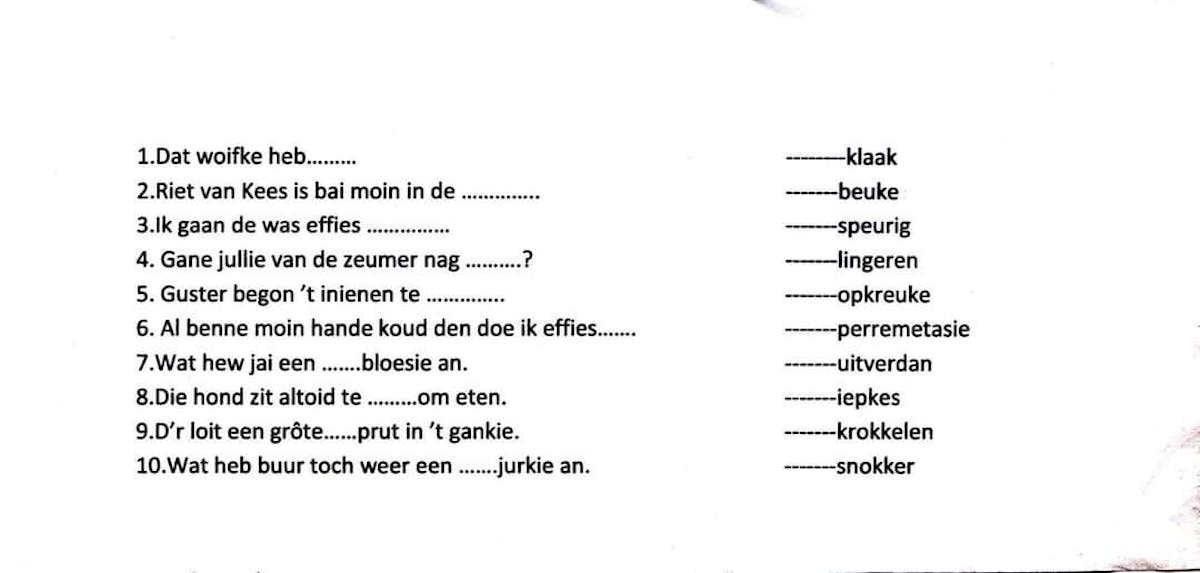 Ik ben benuwd of jullie al deuze woorde (zie afbeelding) kenne en zô niet den hoor ik dat graag. 😊