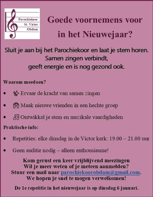 Meer berichten van Parochiekoor Sint Victor Obdam