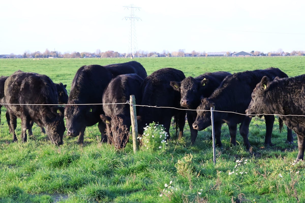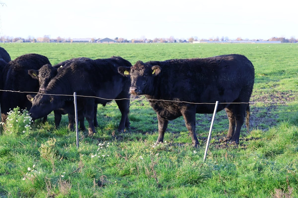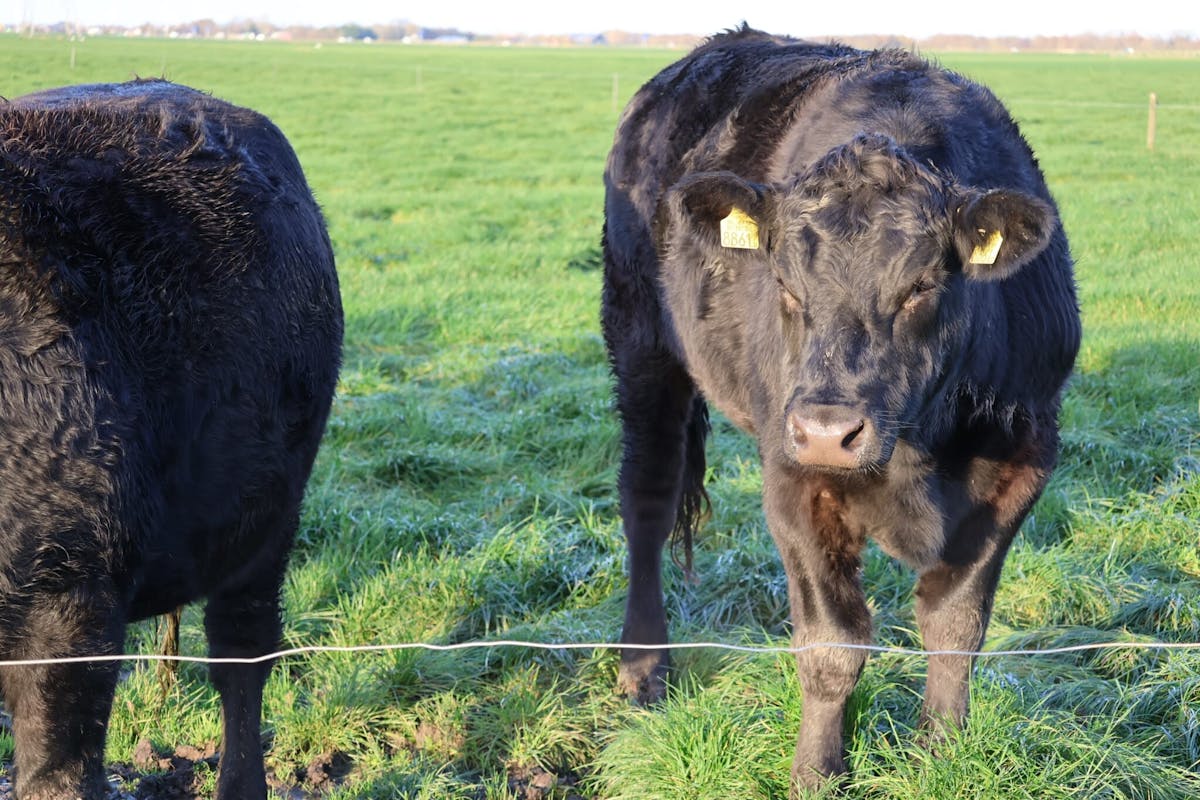 Kijk onze Aberdeen Angus ossen nog heerlijk tevreden buiten lopen!