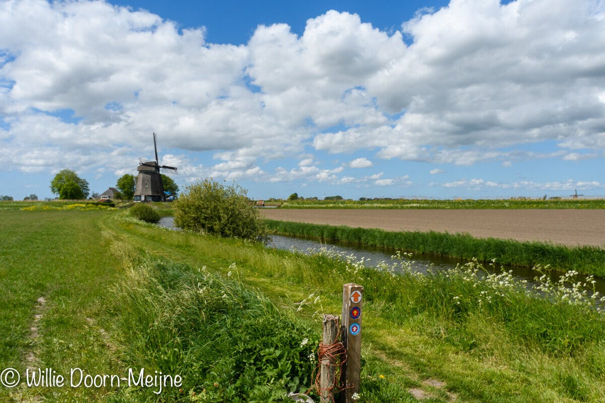Tijdens de wandeling van zes kilometer was de Obdammermolen vaak in het zicht.