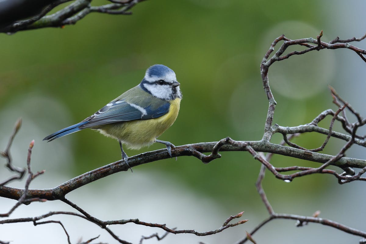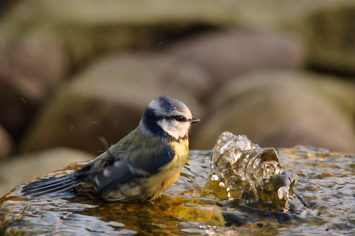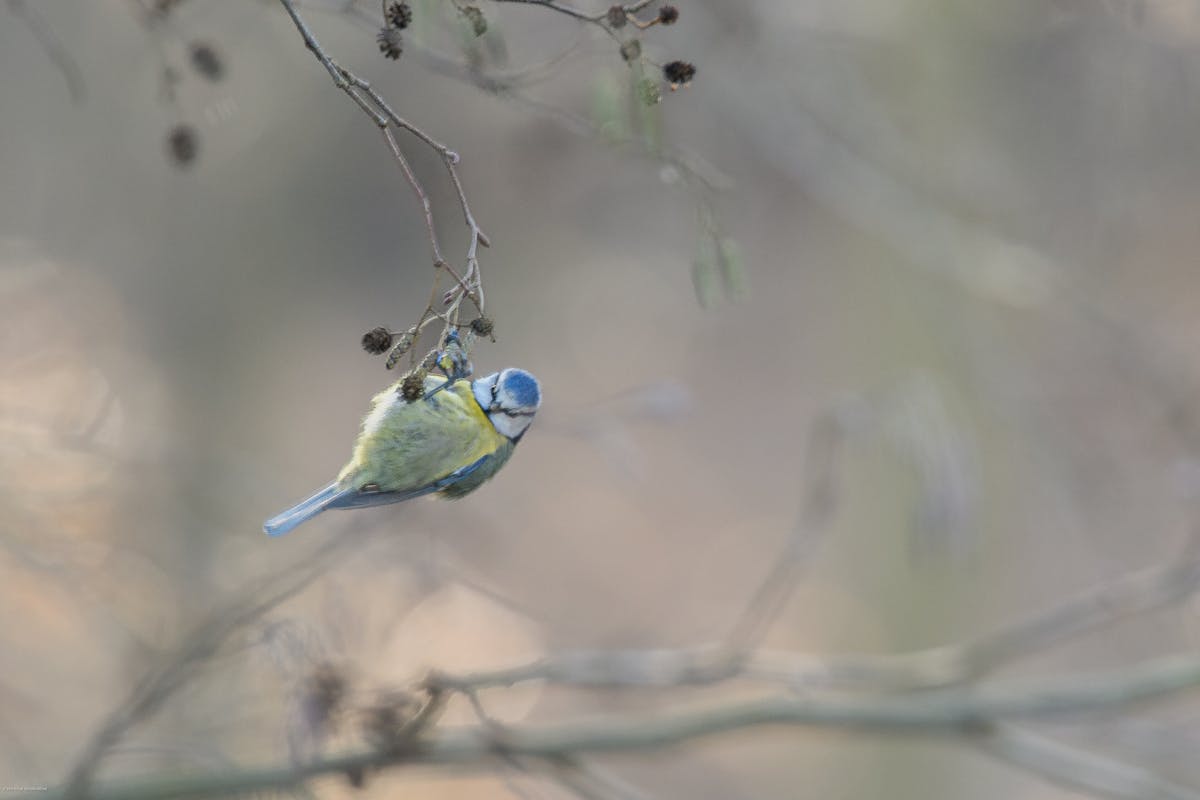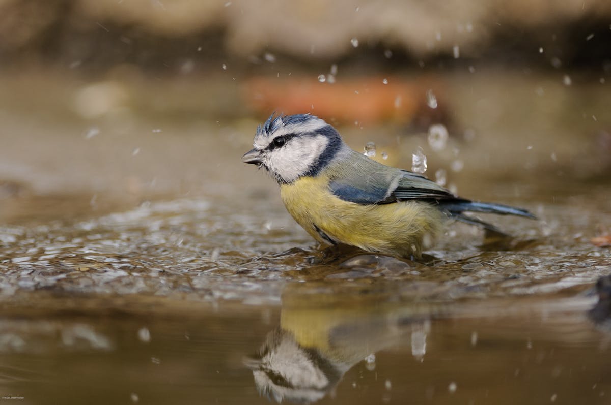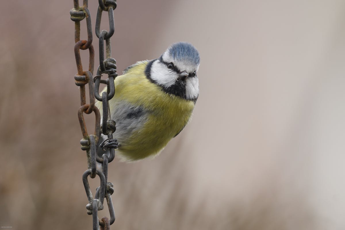 In onze achtertuin zie ik ook veel Pimpelmezen, normaal zijn het er twee, nu tel ik er zo'n zes stuks. Het zijn leuke acrobaatjes, hangen ondersteboven in takken en vinden overal wat eetbaars. We hebben ook een voedersilo hangen en hier en daar staan waterbakken. Behalve drinken, badderen ze daar ook lekker in.