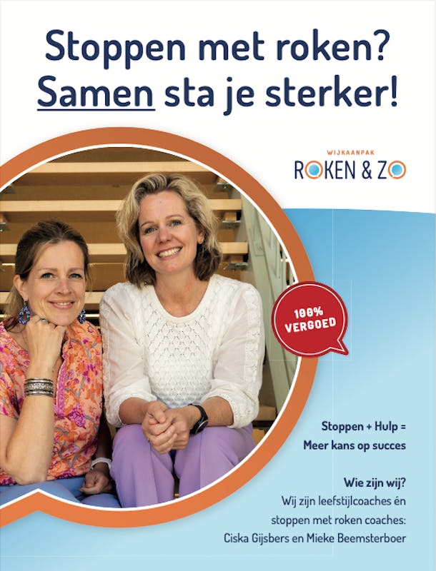 In Koggenland kun je terecht bij je huisarts of bij Mieke en Ciska, de stoppen-met-roken coaches van 7xgezond. Zij weten precies hoe ze je kunnen begeleiden.