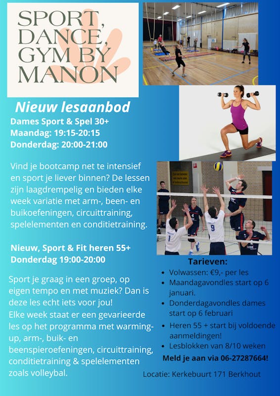 Sport je graag in een groep, in je eigen tempo en met muziek? Dan is deze les echt iets voor jou! Elke week staat er een gevarieerde les op het programma met warming-up, arm-, buik- en beenspieroefeningen, circuittraining, conditietraining & spelelementen zoals volleybal.