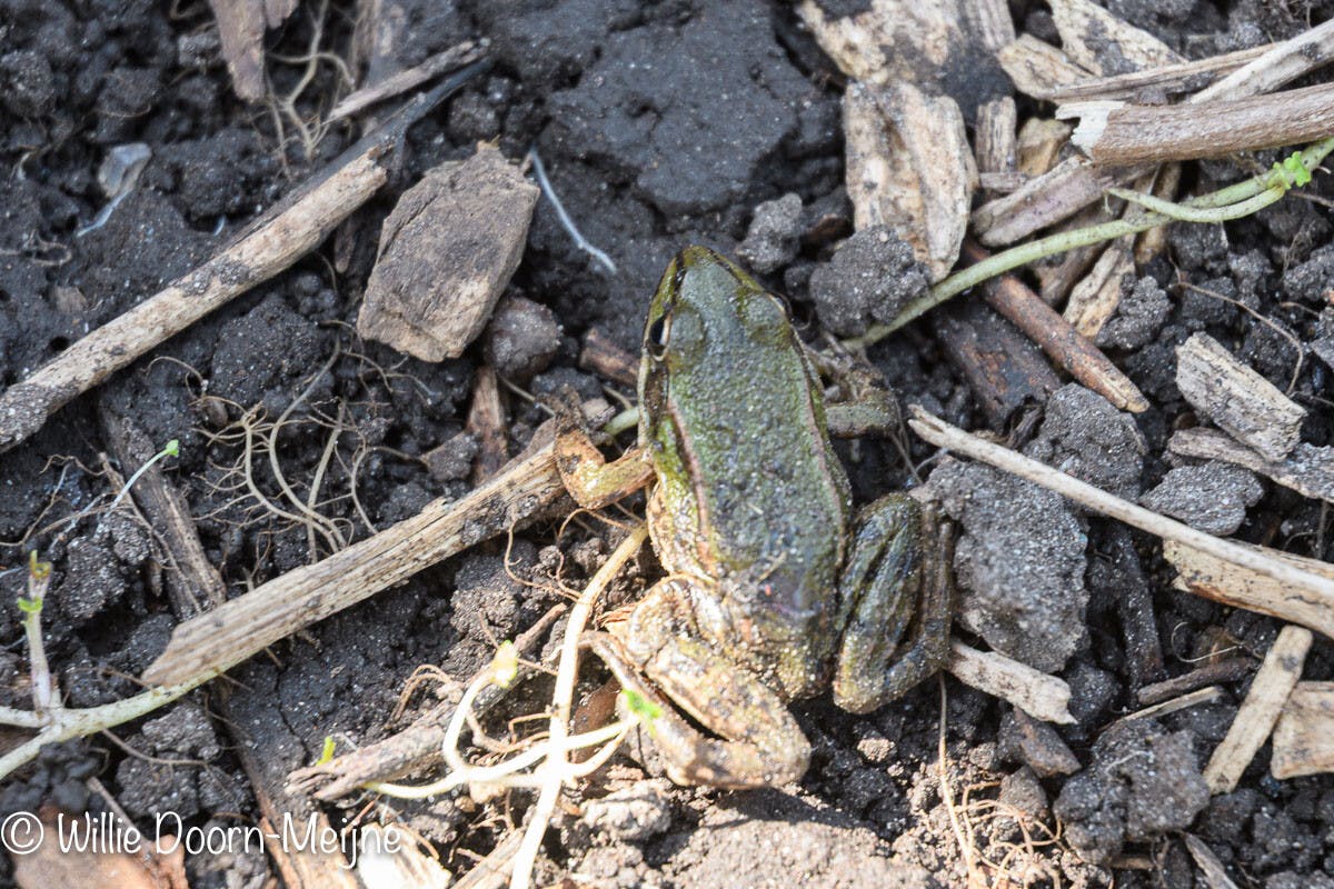 Onder een plank ontdekte ik een groene kikker, ik word daar wel blij van.