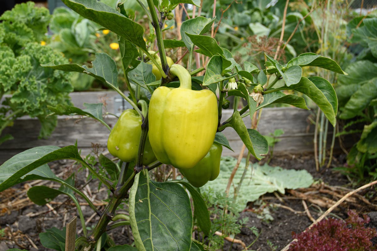 Dit jaar heb ik voor het eerst paprika gezaaid, de ene plant doet het wat beter dan de ander. Maar ik ben blij met het resultaat tot nu toe, ze kunnen nog een paar weken groeien en kleuren.