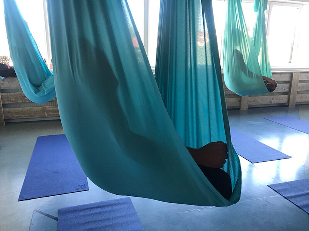 Op donderdagavond Aerial Yin yoga in de Yoga Loft (Blokker) www.yogaloft.nu